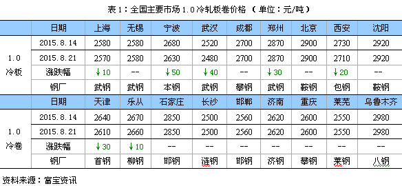 本周冷軋市場穩(wěn)中有弱。具體來看,華東市場大體持穩(wěn),商家根據(jù)自身庫存適度調(diào)整,1.0mm資源卷板在2550-2600元左右,另外一些新貨也陸續(xù)到達(dá),但出貨較前期回落,后市信心顯不足;華中武鋼市場受日照低位資源影響,武鋼報盤回落在2480元,日照在2350-2400元,;長沙較為平穩(wěn),雖漣鋼下旬政策跌70元,但商家仍以觀望為主;華北天津市場穩(wěn)中趨弱,主要最近唐鋼、首鋼到貨增多,前期規(guī)格短缺的支撐力度轉(zhuǎn)弱,加之下游需求萎靡且觀望采購,商戶日成交量多在兩百噸,個別甚至創(chuàng)最低日成交量,致使心態(tài)偏空,更加傾向套現(xiàn);華南市場盤穩(wěn)運(yùn)行,成交偏弱,目前柳鋼價格2650-2670元/噸左右的水平,另外武鋼近期將加大投放量,后市不利因素漸增。